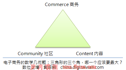 从内容集成社区是容易的,君不见新浪把博客跟微博玩得虎虎生风。 反之从社区集成内容也是容易的,从每个草根用户提炼出内容来还是 具有一定的可观性。唯独从内容与社区迈向电子商务的集成是困难的 ,例如全球范围内门户网站做电子商务成功的例子并不太多。