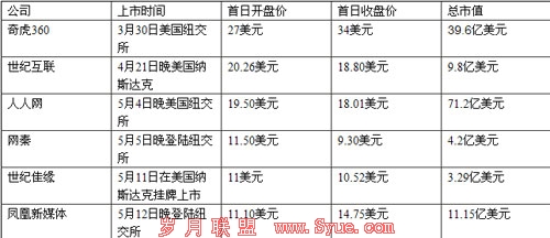 在上市与行业空间的双重诱惑下,中国的互联网产业表现出空前的活跃,一时间变得十分抢手,风险投资更是对其表现出前所未有的疯狂。从去年底的优酷和麦考林上市,到今年的奇虎、人人网、网秦、盛大文学、世纪佳缘等互联网企业,加上正在积极筹备上市的土豆网、迅雷、开心网、际通宝等,涉及多个领域的中国互联网企业排队等上市的景象,已构成了美国资本市场近期一道独特的“中国风景线”。