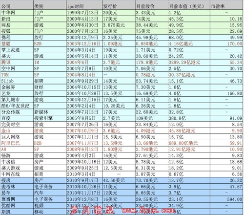 际通宝统计数据显示截至2010年底,在境内外上市的中国互联网企业合计为33家,见表一: