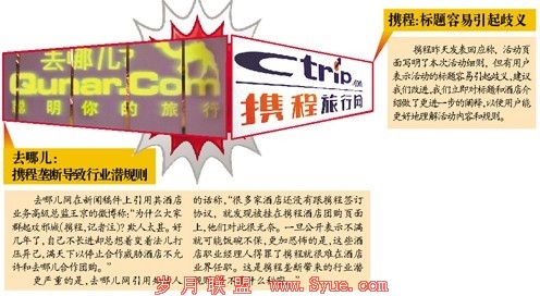 据了解,携程是大型机票代理的代表,而去哪儿网则是中小机票、酒店代理商的平台,双方正面交锋的背后,本质上还是大型旅游代理商与中小型旅游代理商的竞争。