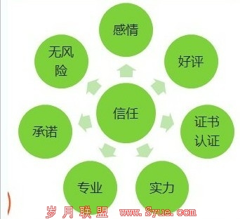我们知道当一位消费者看到你的商品页面后,可能当场就会对商品产生浓厚的兴趣。但是对于商品的疑虑经很大程度上大小其购买的欲望。对此我们的商品页面设计需要更好的建立站点的权威,让我们的商品看起来更加的有保障,大小消费者在购买产品时的疑虑。那么我们可以从哪几方面下手呢。如下图所示,笔者认为我们可以从以下几个方向入手。