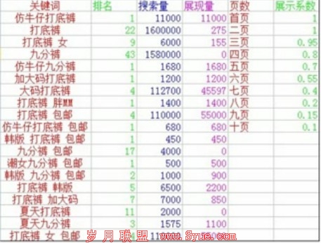 通过观察数据,我们发现九分裤这个词对于我们的展现量是没有什么贡献的,那么我把它替换掉试试看。