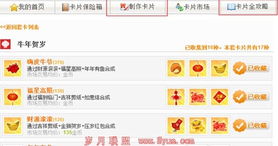 实例三:一个相反的例子,欢乐卡片的应用,制从“我的首页”页面当中,制作卡片的时候需要哪些卡面是在“卡片全攻略”页面来说明的,因此用户在制作卡片的时候需要不断切换到“卡片全攻略”页面来查看需要合成的卡片,因此,在这样的情形下,采用弹出窗口的形式来表现卡片合成向导应该更合适一些。