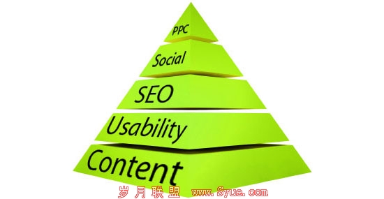 网站金字塔结构:网站内容---用户体验---SEO--- 媒体宣传---PPC。支撑最基础是内容!!!