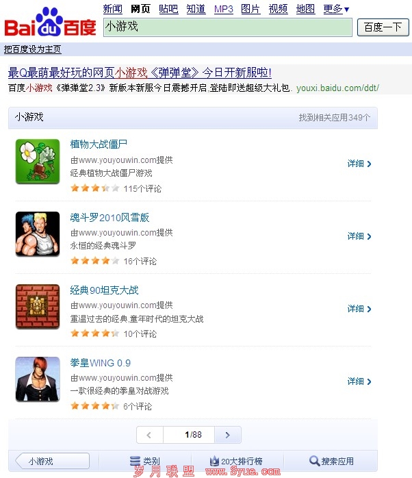 其几天在QQ微博看到有人发了一张截图,就是在百度搜“小游戏”的时候,返回结果页面和以前有点差别。据说是8-31号早上凌晨做的调整。下面是截图: