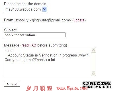 6.看到没有?上面图片中可以看到对方的回复,让我们等待24小时再登录。到这里,我可以告诉你,你的网站免费空间已经申请成功了,也就是说,24小时后,你就可以登录,管理你的这个免费空间了,我要恭喜你!