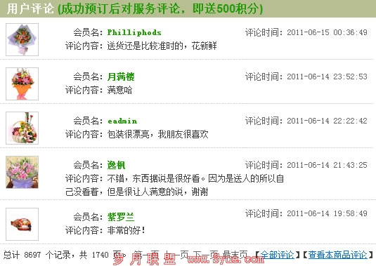 网购过程中确认收货后,网站系统会提示和引导用户评价。比如在优花网www.1608.cn这个在线鲜花订购平台,在“我的订单”页面的显著位置提醒用户评价,成功预订后对服务进行评价,即送500积分(相当于5元人民币),而这个积分又可以再购买鲜花或积累后直接提现,这种方式不仅让老用户时刻惦记着没有使用完的积分,增加老用户的粘性;更重要的是让新用户在评价中了解网站的服务,增强对网站的好感,并提供参考信息。通过高额积分鼓励用户评价,把用户真实评价放在网站显眼位置显示给其新用户,最终实现成功下单。