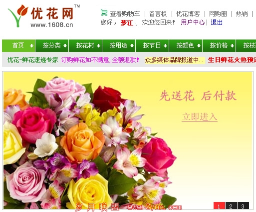 在地方网站中,如果一下子增加了来自全国的用户,很可能导致本地用户访问不流畅,而这些全国的用户大部分是一次性用户,即使网站做得再好,也很难发展成长期用户。在电子商务网站中,比如卖包,卖花等网站中,流量确实体现了网站的活跃度和知名度,但如果流量没有发展成订单,再好的流量也是徒劳。以鲜花订购平台优花网为例www.1608.cn,如果把流量作为网站重点,而忽视网站细节完善就可能得不偿失。优花网对外推广宣传并不选择在各大门户网站购买硬广告,而是通过微博、鼓励用户评价和反馈信息、口碑传播等方式进行推广,侧重推广的质量而不是数量。流量只是浮云,能发展成有效用户,成功下单才最重要。