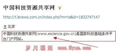 有一天笔者浏览记事狗微博网站时,发现中国科技资源共享网的微博带有外链,百度了一下,还真被百度收录了,从此我也学会了这招增加外链的方法。下面网推365先给大家看看中国科技资源共享网在记事狗微博中是怎样操作的吧,如下图所示: