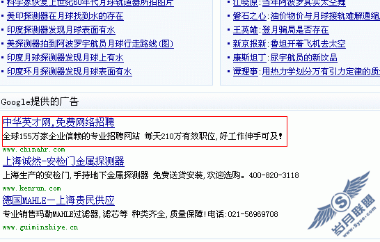 比如我举个简单的例子来说,比如说Google Adwords代理商在你想投放网络广告的时候,提出了你交多少钱,就可以把你的广告在Google的内容网络中比如说新浪,排名做到第一位,我给大家个图看一下: