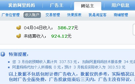 截止到现在,差不多有50万淘客大军从网络中赚钱。以前的时候竞争做淘客的人还不多,它们每天的工作很简单,只是发发贴,留留言,好的话月入过万不是问题。于是越来越多的人进军淘客了,一些淘客感觉到了一些问题,单单的发帖,一是太累,二是成交几率太小.这里小弟只介绍自己是怎样做到现在得6K收入的。不是瞎扯,以为6K对那些做得好的人来说,估计觉得很少.所以高手飘过……………