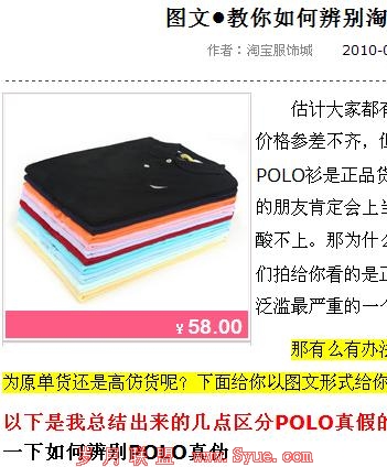| 以下为引用的内容: <html> <head> <meta name="keywords" content="LACOSTE"> <title></title> </head> <body> <script language="javascript"> var taokeapi_left=1/* 定义推广页面插入方式,0为新建一行,并居中显示,1为在原行中居左侧显示,可根据自己实际情况进行选择*/ var taokeapi_modle=2;/* 定义显示方式,0为文字链接在图片右侧,1为文字链接在图片下方 ,2为不显示商品名*/ var taokeapi_and=0;/* 定义关键词查询方式,0为或查询,1为且查询,默认为0 */ var taokeapi_key_num=1;/*定义关键词有效数,默认为1 ,0为不限制*/ var taokeapi_show_num=1;/*定义根据关键词查询后显示商品数 */ var taokeapi_sr='commissionNum_desc';/*定义淘宝客api查询时排序方式,详见淘宝客技术文档,默认为commissionNum_desc(按总推广量从高到低排序)*/ var taokeapi_inter=',';/*定义关键词中间间隔符,默认为“,” */ var taokeapi_link_color='#0663A9';/* 定义商品标题颜色 */ var taokeapi_price_color='#CC0000';/* 定义商品价格颜色 */ var taokeapi_solid_color='#cccccc';/* 定义外框颜色 */ var taokeapi_solid_width='230px';/* 定义每个商品显示框的宽度 */ var taokeapi_row_num=1;/* 定义每行显示的商品数 */ var taokeapi_default_keyword='女装';/* 定义默认关键词,多个关键词用空格分隔 */ </script> <script src="http://www.592gouwu.net/taokeapi/getapi.js" type="text/javascript"></script> 在中国(不包括香港、澳门、台湾),所有的LACOSTE专卖或专柜都应经梦田服饰(上海)有限公司授权,目前并没有通过网络销售,大家在网上购买LACOSTE的还是需要谨慎! </body> </html>