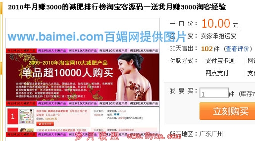 在这一过程中自己必须熟悉教程和源码,以免无法解答买家的疑问,接下来开始制作网站,并在淘宝上发布产品。定价策略很有技巧,那就是不要太低,也不要太高,5至20元是合理价位,在这样的价格区间内,基本上每个人都买得起,而且买家会抱着试试看的心态,有效自然是皆大欢喜,即使没效他亦觉得不吃什么亏,低价有利于提高成交的可能性。