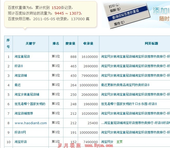 这种站首先做个关键词,通过这个词每天有源源不断的流量来到站点了,同时站点做的很独特,很用心用户喜欢后会加入收藏夹,随着时间的增长,加入收藏夹的人越来越多,用户一旦去淘宝购物都会先来网站看看,品牌形成后即使不靠百度搜索收入也会很稳定。例如非常出名的好店8,他最初做的关键词是“淘宝好店”,搜索这个词的人都是想找淘宝网上比较好的店铺,他的网站排第一后用户觉得不错会收藏,以后还会继续来,这样虽说这个词的流量每天只有100,但是短短几个月内好店8就可以做到几皇冠真的是很牛。现在他修改了标题做了“淘宝网女装”现在也在百度前五,很是不错。这个站已经成为一个品牌站。类似的品牌比如淘老大的tkshop和戴仁光的28街。当然其他的类似百度搜索“淘宝网皇冠店铺”,“淘宝热卖网”,“淘宝打折网”等都可以形成品牌。