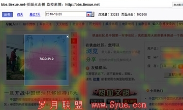 首先是通过百度热力图或者谷歌热力图查看网站的用户行为。简单来说,热力图是一张用户点击图,你可以从图中轻松看出哪里的点击率比较高,哪里的点击率比较低,这样便可以大致得出哪里投放广告会得到更多的关注。如下图所示: