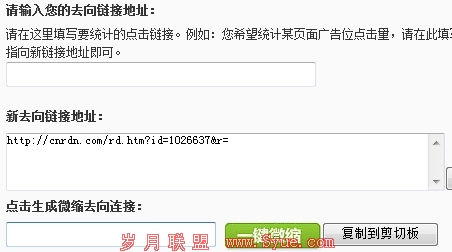 其实,现在还有一种比较简单的方法,这是我在一个购物网站上看到的。现在有 一种缩短链接的网站,你输入一个链接,这个网站会给你一个较短的链接;现在的微博都能实现链接缩短,不过却不会统计链接的点出次数。这种缩短链接的网站能实现这样的功能,只要你注册会员,你便可以获取缩短链接的点出次数。将你的测试页面链接替换成缩短链接,这样便可以轻松跟踪点出次数。