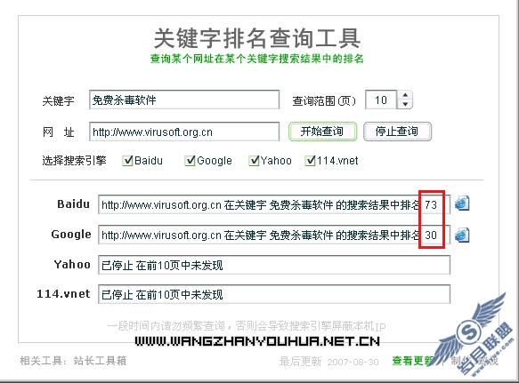 http://www.virusoft.org.cn 在 免费杀毒软件 的搜索结果中排名 12
