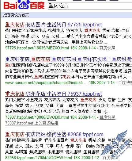 呵呵,从第4-7页80%是同一个网站,而且网站打开同时跳转到一个1848.cn的鲜花网上面。