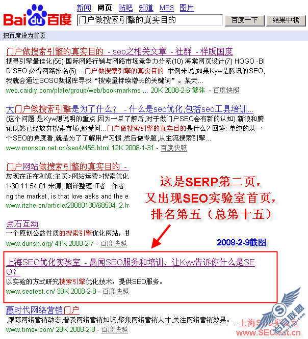 我刚才在百度搜索“门户做搜索引擎的真实目的”后,SERP前2页截图如下: