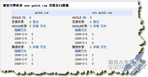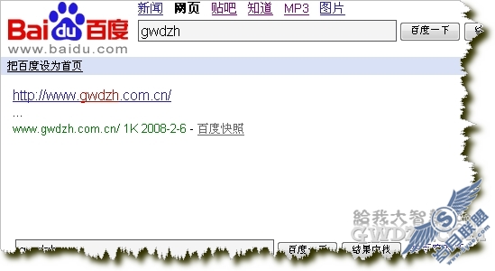 百度还是0。没敢对百度抱太大希望。随手在百度搜“gwdzh”,居然有内容,粗看网址,那不是我的网站吗,终于收录了,心里暗喜。