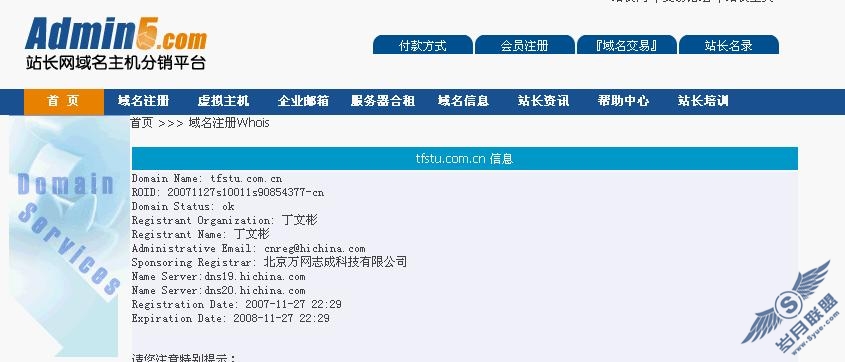这上面的日期为2007-11-27注册以前没有任何注册信息.