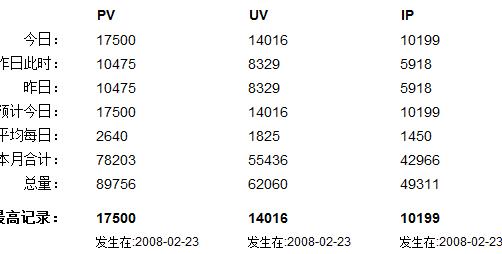 demoseo专题站,建站已经34天了,yahoo和51la的统计结果:日PV达到了17000,IP过了10000,是个不错的收获,相对于个人博客来说,这已超过我想象的值了。从上次1月29日的报告“建站8天,日IP过千",如今已是十倍的量加了,感觉还需要继续保持才行。今天就分享一下建站的经历,也希望自己能继续保持并有所提升。(PV,IP不是怎么了解的知,可以看看我个人博客里收集的知识是关于解释PV UV IP 的意思的)。