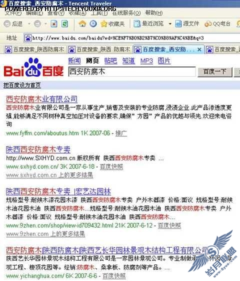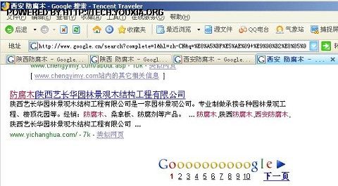 陕西西安某防腐木公司网站搜索引擎优化结果