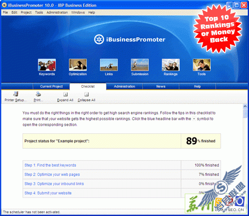 国外有站网站评论对此软件的定位与服务承诺这样说:The most important feature of IBP 10 is our new guarantee: top 10 rankings or money back! We are absolutely sure that IBP 10 is a website promotion tool that delivers。