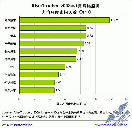 艾瑞最新发布的调查数据显示,2008年1月网站导航人均月度访问天数升至第二,而排第一的是搜索引擎。