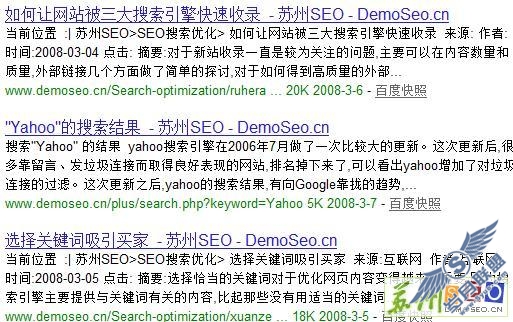本文就是以苏州SEO(www.demoseo.cn)的百度及搜索引擎的收录情况做一些简单的讨论,以更好的适合国内主流的搜索引擎对网站更合适的表现。