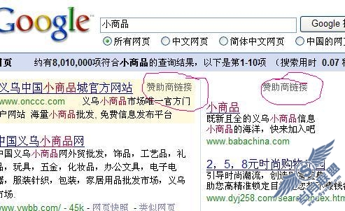 广告商对于搜索引擎的赞助或者竞价排名。用简单的文字描述自己的小型广告内容。广告被点击一次,就给搜索引擎一次钱。越是热门关键字,价格就越高,支付最高的排名首位。
