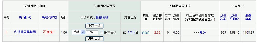 今天一大早,看见群里有人在说百度取消了所有关于“私服”一词的竞价排名,包括火爆地带。去搜索了下,果然如此。以前“私服”这个词在百度前十全部是推广火爆地带的位置全部出售完毕。一朋友做服务器出租的站:做私服服务器出租一次,今天也被愕然叫停,原因是不适宜推广。
