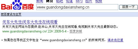 这个问题是我无意中发现的,闲来无聊就想做个短期 的电影专题网站,看看这些热门的指数月之后指数的热度还有多少呢,就在百度指数里搜了春节前还比较热门的赵本山老先生的“关东大先生”记的刚开始指数有三万多吧,现在只剩可怜的几百了,随即就点开了搜索看看现在还有哪些这方面的网站,奇怪的现象又出现了,排在百度第三的(http://www.guandongdaxiansheng.cn)第一和第二是百度的视频和百科,看了一下快照是四号的,心想这么久了还在更新啊,整佩服这个站长的耐心呢!可打开网站,最新文章是三月九号的,几个月不更新了快照还是昨天的!