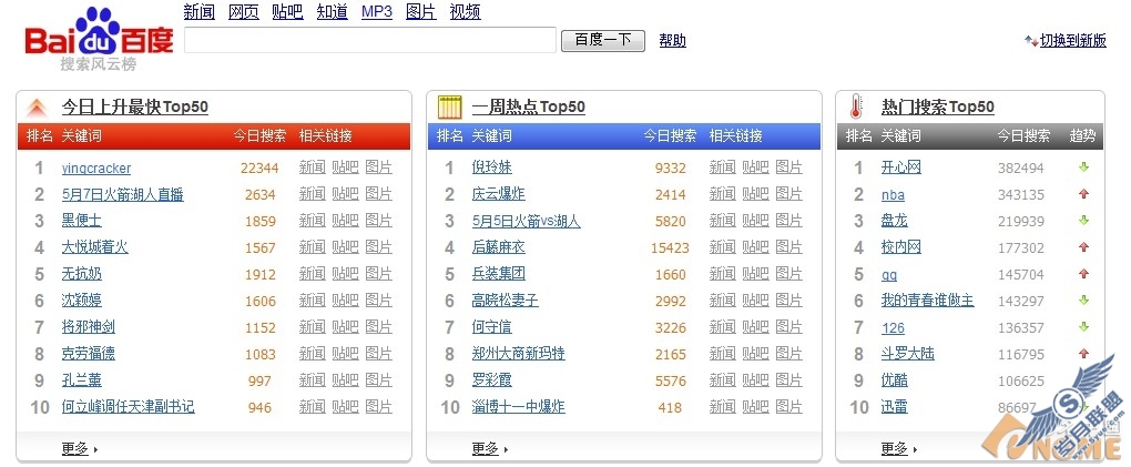 5月8日消息,百度搜索风云榜(域名top.baidu.com)全新改版,风云榜改版后界面更清新,视觉效果更柔和,风格也更加时尚 。