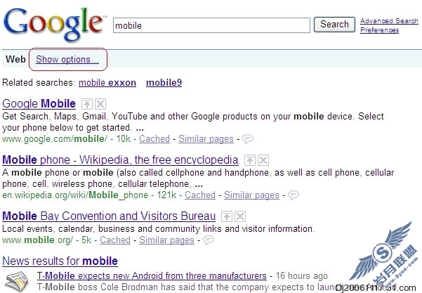 这项功能目前只在Google的英文网站上测试的出来给大家,看下面的图: