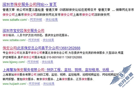 谷歌中输入保安公司,大家可以看到谷歌标题抓取模式