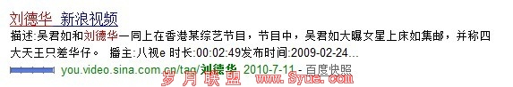 我们搜索刘德华这个关键词,发现新浪都是用百度都是用子目录在做,而且呢,子目录中的关键字被搜索引擎加粗了,说明什么?说明这个目录中的文字是算在搜索引擎计算中的一部分,所以这里出线关键字自然会得到一点权重。