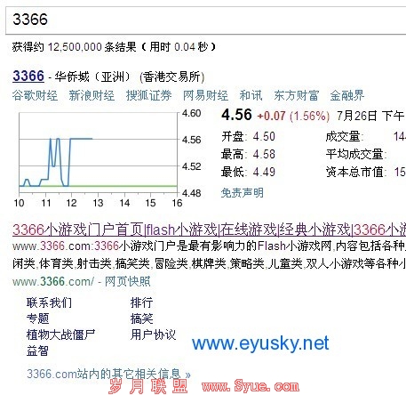 今天,有些好奇就搜索了下3366这个数字,发现GOOGLE给了他 sitelink,与是本人就查找了相关的信息,发现3366这个域名是在08年2月份才注册的,网站正式上线公司是在今年的7月2号,其中有两篇搜狐IT与比特网的报道。本人又查了DMOZ也并没有收录3366这个网站。