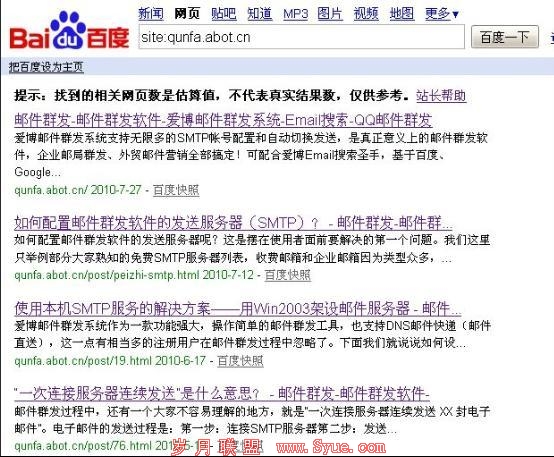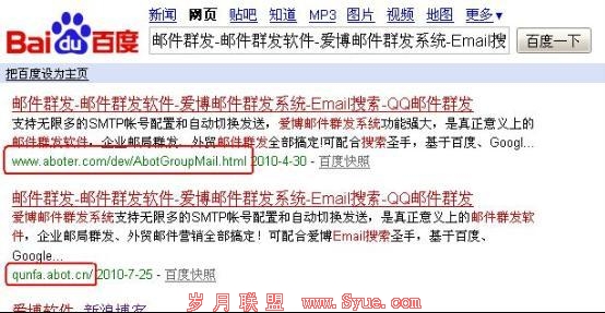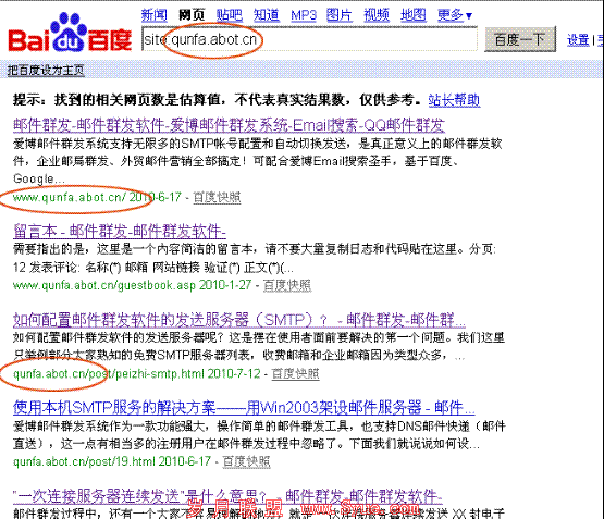 其中的 http://www.qunfa.abot.cn 早在一年多以前就301到http://qunfa.abot.cn 上去,在Google中搜索,早就找不到这个域名的影子,而百度中为什么还会有呢?而且网页快照都是最近的!