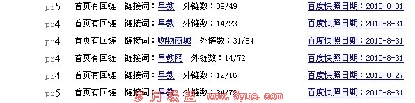 网站的部分友情链接。这个网站的快照是8-22,而图中的友情链接显示快照日期基本上都是31号的最新快照。