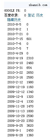这一月做的工作,服务器一直保持稳定,严卡垃圾信息,信息都必须经过审核,把以前的过期垃圾信息全部删除掉了,把站点TIELE改了,原来城市关键词过多,还有关键词描述等等细节地方,坚持每天更新站点伪原创文章,每天到相关论坛发布篇带外链文章,由于站点多,推广很麻烦,而且我也不太注重外链的作用!