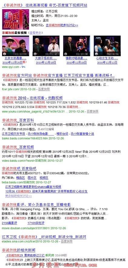 框计算的目标是为用户提供基于搜索框的一站式搜索服务。举例来说,当用户在搜索框中输入“非诚勿扰”时,系统就能明确该query有寻求电视节目视频、电影视频、查找影评、参与讨论及查看相关新闻等需求,然后将这些不同的需求分配给最优的内容资源或应用进行处理,最终精准高效地将满足这些需求的结果展现给用户。图1展示了“框”对query“非诚勿扰”的满足情况。从上面的分析中,我们不难看出,框计算的第一步,就是识别出一个query具有哪些需求,而这正是需求分析要完成的任务。