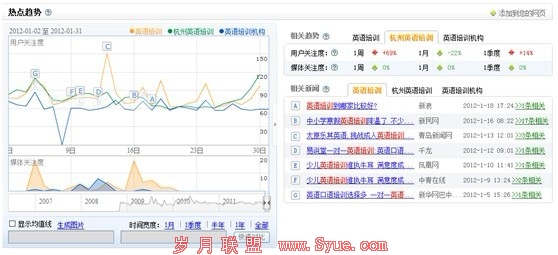 总结好老词后我们下一步就开始要对网民新的搜索词进行总结,我们可以通过2个工具来总结,一个是百度指数,一个是百度后台关键词推荐工具。对于百度指数来说我们可以看到下图: