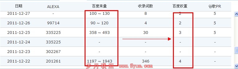 流量是每一个网站的立站之根本,不论你是靠广告或者是销售产品的企业站点,没有流量就意味着你的站点如同死水一般。同样据笔者的观察,流量对于权重也存在着一定的影响。对此我们可以从笔者网站上的权重波动看出端倪。笔者的站点因为在全年进行升级过,升级期间内容页面的URL地址都发生了改变,因为内容量较大,故没做301,但是也忽略了404错误页面,最终导致的是站点流量急速下降,如图一所示。而流量的下降很明显的影响到了站点的权重值。如图二所示,权重随着流量的降低进行了波动。对于这个事件?其实这个问题答案很多,笔者除了想说明流量对权重的影响外,还想说作为优化人员我们需要细心,尤其是在站点改版的期间,因为一个错误都将有可能使我们的优化功亏一篑。