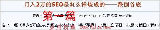 叶枫的4篇月入2万系列软文,可以说是今年到现在为止A5里非常成功的软文。虽然有很多人踩了他的文章,但从传播的角度来说,达到了一定的数量级。普通的软文如果能有300的点击量就不错了,如果我猜得不错,他的这4篇文章每篇都应该在1000甚至更多的点击量。那么我们从这样的软文里应该学习什么呢?