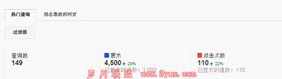 这里,我们只要拿点击次数来除以展示次数,就知道点击率了,当你的点击率很低的时候,你是否会去查看一下你的网页,看标题、描述,是否写得符号用户的需要,是否把主要的网页主题展现出来了,这是我们要考虑的,而且是非常重要的。A5优化团队原创,转载请注明www.tangshijun.com