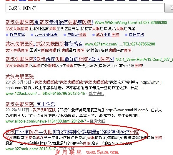 不过让笔者稍微欣慰的是笔者另一个上线不到半年的站在这次更新中关键词“武汉失眠医院”排名竟然有了不小的飞跃: