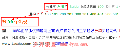 如果我没看错的话,好乐买也是淘鞋网的主要的竞争对手之一,竟然在友情链接中做“好乐买”关键字的排名,可惜我们大家搜索“好乐买”,在前五页全部都是好乐买本身的页面排名,做这个关键字意义何在呢?下面笔者就截图一下淘鞋网分别在“乐淘”和“好乐买”100名之类的排名,如图