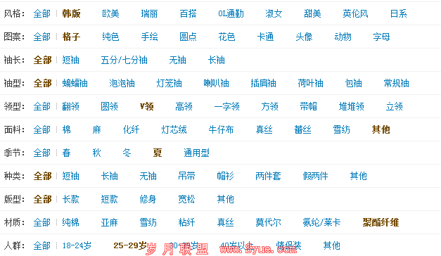 从这一份title可以看出来,淘鞋网一共在类目中设置了6个参数,而在有的网站中,类目设置了可能超过了10个,如当当网的类目设置