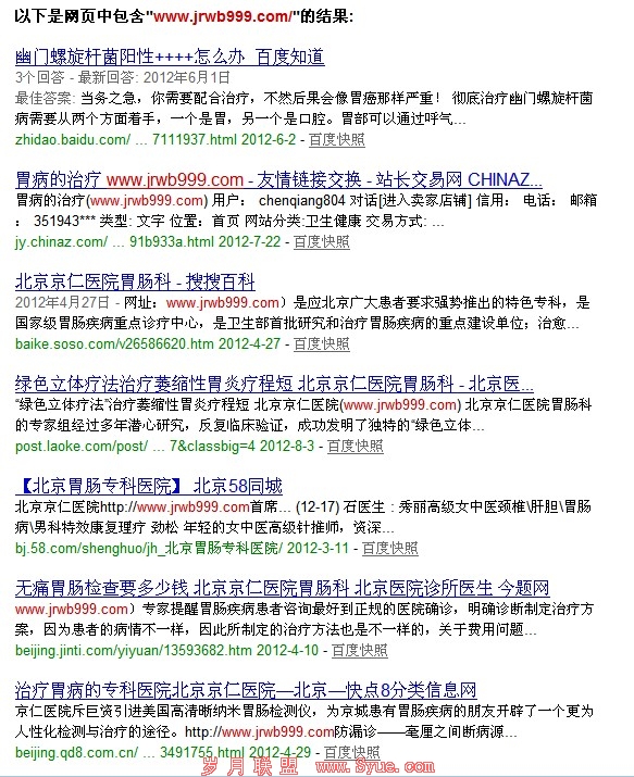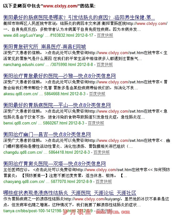 百度的近几次大更新影响数不尽的医疗站点,每天群里论坛讨论最多的都是你的站怎么样了,被K了吗,恢复了吗。医疗站和其他的站有些不同就是行业间的竞争大,大部分seoer都是在做医疗站点,想要自己的网站有好的排名就是要挤掉其他竞争对手的站,踩着别人的尸体前进。因此,医疗站的外链也就在一定程度上决定了这个站前景。